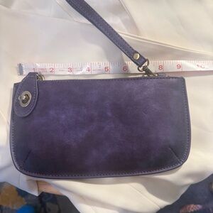 Joy Susan Deep Vegan Suede Purple Lux Wristlet Clutch