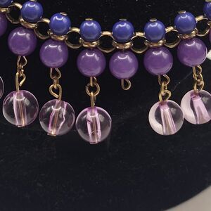 COLDWATER CREEK Purple Dangle Drop Fringe Acrylic Beaded Necklace 21in | Materials: acrylic | Length: 21in | Clasp: lobster clasp | Signed? coldwater creek | Vintage condition - missing 1 bauble