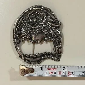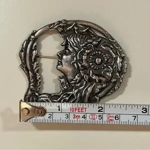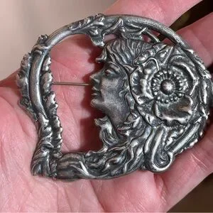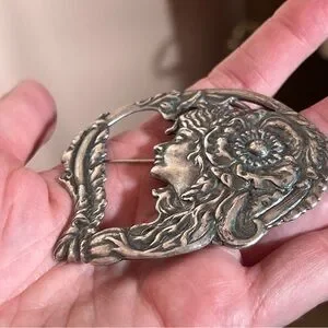 Antique Art Nouveau Art Deco Silver Lady Face Victorian Brooch Fairycore