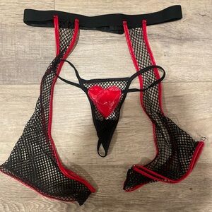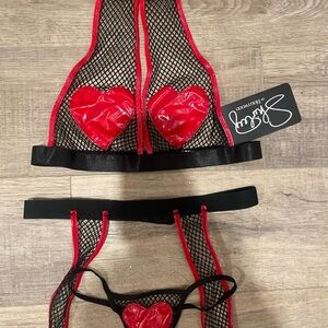 NWT STOP MY BEATING HEART FISHNET BRA SET IN RED & BLACK