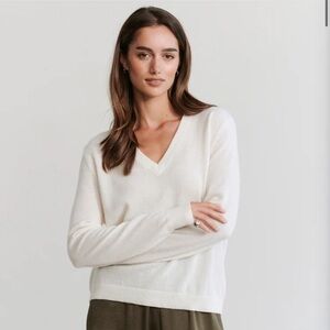 Jenni Kayne Flynn Cashmere Sweater Ivory Medium V-Neck Long Sleeves NEW