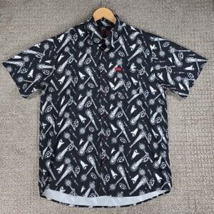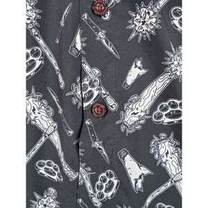 DIXXON The Darkest Black White Weapons Print Short Sleeve Button Shirt L D-Lite
