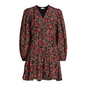 New Rhode Caro Floral Wrap Mini Dress Black Red Medium $565