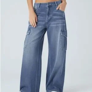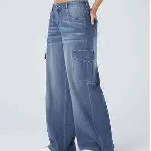 Halara Flex™ Low Rise Pockets Casual Baggy Wide Leg Cargo Jeans