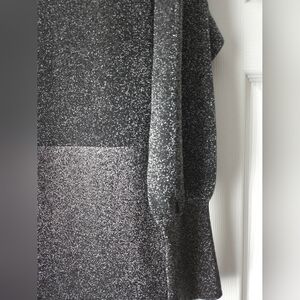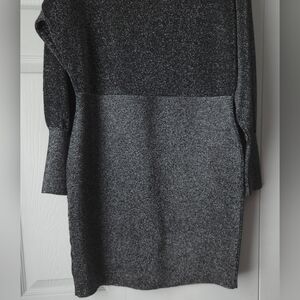 Chic gray metallic sweater dress. Soft knit fabric. Perfect for cool fall or winter weather.