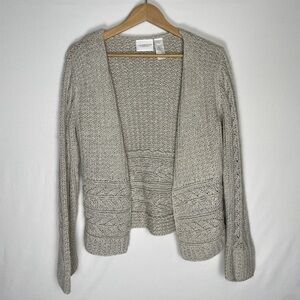 Vintage Liz Claiborne gray knit cardigan, silk blend lagenlook boho cottage