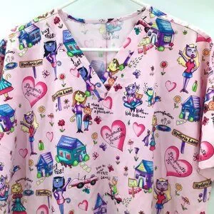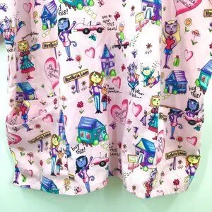 CUTE 2X 3X Pink Scrubs Desperate Housecats Cats Kitty Pattern 3 Pockets S/S