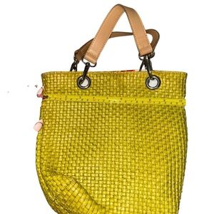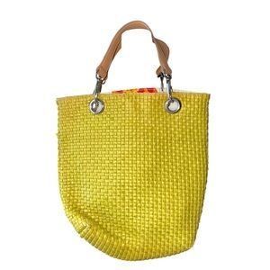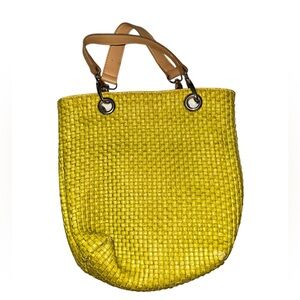 Made in Italy Maurizio Taiuti Neon Yellow Woven Tote Bag European Summer