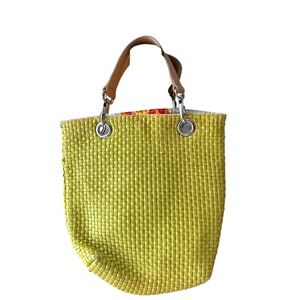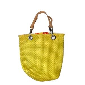 Brighten your day with this stylish yellow woven tote bag. Perfect for any occasion, this bag combines fashion and functionality.