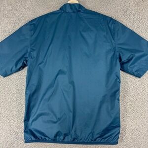 Style: Mens short sleeve pullover golf windbreaker jacket with quarter-zip mock neck in Adidas Climastorm weather-resistant fabrication. Pre-owned, gently worn with minimal signs of use; fabric, lining, and logos are clean and intact.