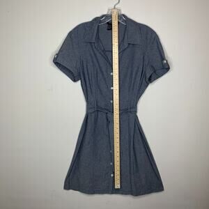 Hope & Honey Size 6 Cotton Chambray Button Up Belted Short Sleeve Shirt Dress