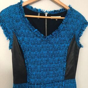 Rebecca Taylor blue and black tweed leather dress SZ 4