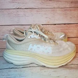 Hoka Womens 8B Bondie 8 Shifting Sand/Eggnog Athletic Running Shoes Sneakers