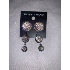 Saks Fifth Avenue Rhinestones Dangle Pierced 1.5" Earrings New