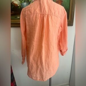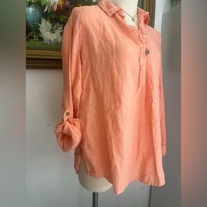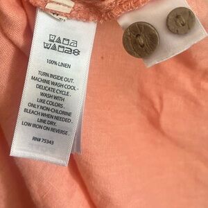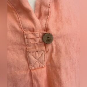 Peach 100% Linen Tunic, natural brown buttons size small