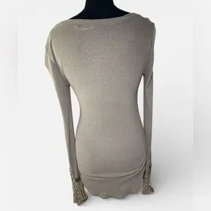 Free People Woman’s Cuff Thermal Long Sleeve Classic Top Sz XS Grey/Brown