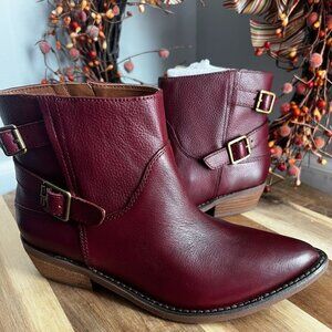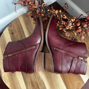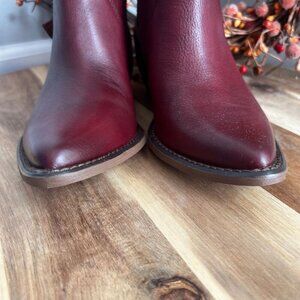Lucky Brand CAELYN Womens Western Pointed Toe Booties Sz 6M Burgundy Leather