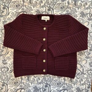 NEW Ba&sh Bash Gaspard Tweed Cardigan Jacket in Burgundy Red