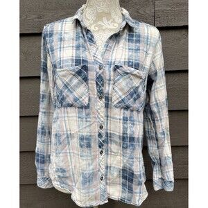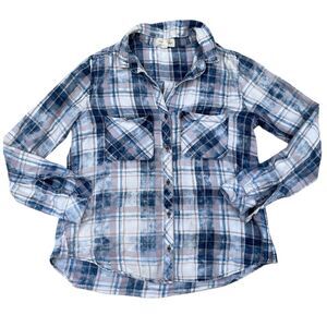 Cloth & Stone Anthropologie Plaid Button Front Shirt Women’s M Blue Cotton Soft