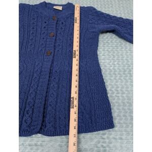 Vintage Kilronan Knitwear Blue Merino Wool Cardigan Cable knit Ireland Small