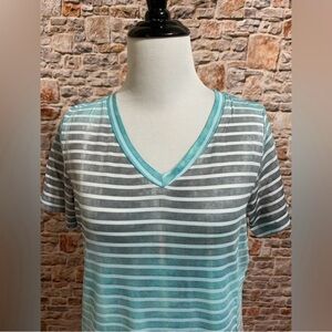 NWT Michelle Mae Turquoise & Gray Stripes Ombré Short Sleeve Tee