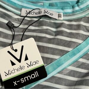 NWT Michelle Mae Turquoise & Gray Stripes Ombré Short Sleeve Tee size XS