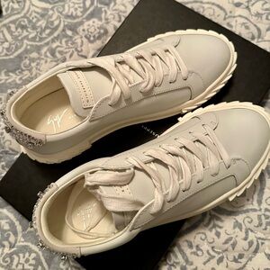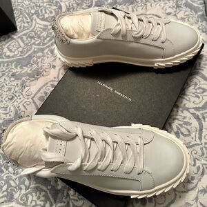 Giuseppe Zanotti Blabber Italian Leather women’s white sneakers with crystals 10