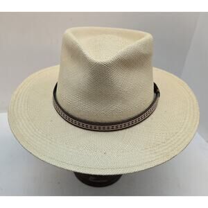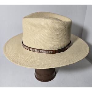 Orvis Genuine Panama Straw Hat Large Hand Woven Band 7-1/4-7 -3/8 USA Made