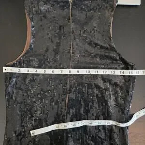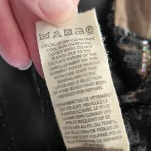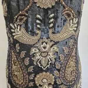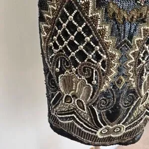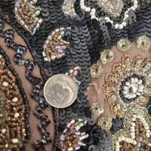 Flaws: Mainly missing sequins along hemline. Also a cluster of beads on bodice