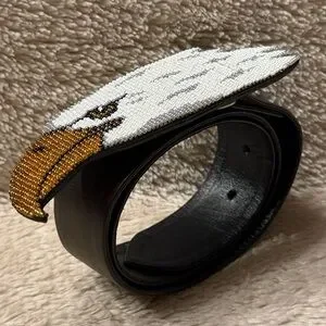 This. Is. Stunning. A vintage handmade Mary B. Hetz eagle buckle leather brown belt. Hetz has been designing and fabricating custom jewelry for over thirty years. Her career has been shaped by a lifelong love of animals, art, and the Japanese concept of wabi-sabi, which means finding beauty in imperfection and nature. Eagle beaded buckle is approximately 2”H x 6”L. Bead detail is in excellent condition. Belt has 5 prong holes which range between 26” through 30” approximately in length. Expected subtle creases in parts of leather. Gift(s) included with purchase. Should you have any questions, please do not hesitate to ask. Thank you for visiting my closet. 💐