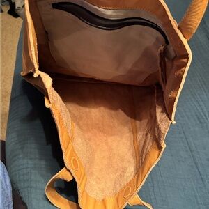 Stylish and versatile tan leather tote bag, perfect for everyday use.
