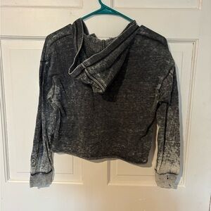 Stylish gray hooded shirt with a buttoned neckline. Perfect for casual wear to the gym.