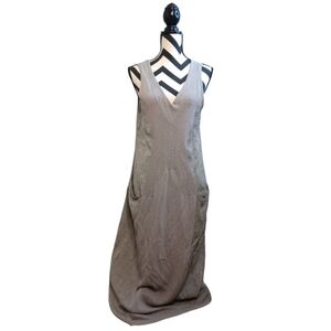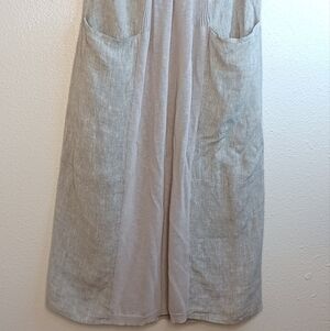 Crea Concept Lagenlook Boho Contemporary Artsy Linen Cotton Contrast Midi Dress.