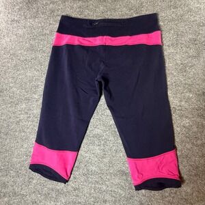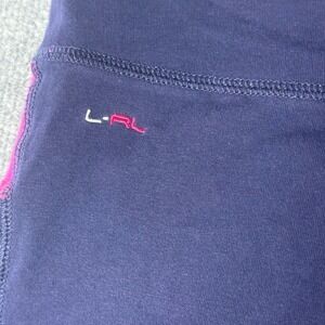 Keywords: Lauren Ralph Lauren, Active, Capri leggings, Womens, Athletic wear, Workout pants, Yoga pants, Pink trim, LRL logo, Navy, Cropped leggings, Sportswear, Comfortable, Activewear