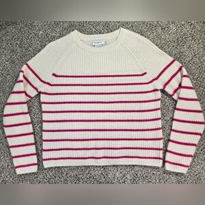Evereve Cashmere Campbell Stripe Pullover Cream & Pink Sweater Size XS Relaxed
