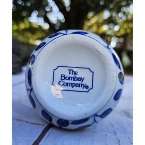 The product is a set of 6" Bombay Co. ceramic white bud vases with blue leaves and flowers. These medium-sized vases feature a glossy finish and are made of pottery. The vases have a blue and white color scheme with a pattern of leaves, perfect for adding a touch of nature to any space. The brand Bombay adds a touch of elegance to this collectible set of decorative vases, making them a beautiful addition to any home decor.