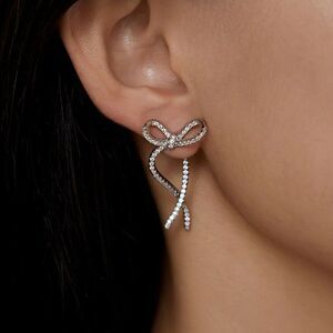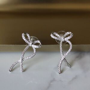 These gorgeous crystal bow earrings are 1 1/2 inches long and 5/8 inches wide. They are durable and lightweight, so they are resistant to bending but will not make your ears sore after a full day of wear. Delicately layered zirconia crystals create texture and volume, allowing any ensemble to bloom.