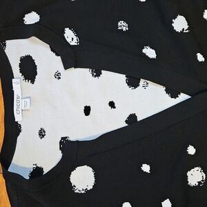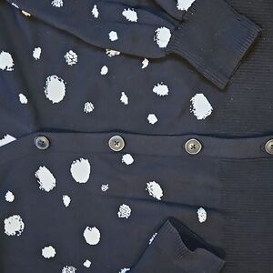 CHICO'S BLACK/WHITE POLKA DOT V NECK CARDIGAN SWEATER sz XL