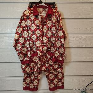 GOLDEN RETRIEVER BUTTON UP 2 PIECE SATIN FEEL PAJAMAS WOMENS LG DOG COZY COMFY