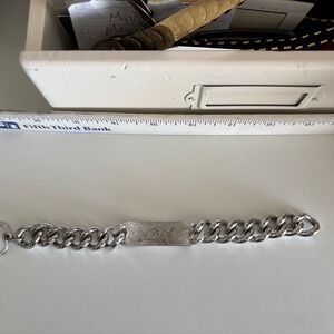 Stunning Speidel Vintage ID bracelet. Thick heavy Silvertone chain with a claw clasp. Is engraved on the front "TOM", which is set in a black toned material. On the back it is also engraved "Deb", which looks like it can be buffed out as it's not that deep. Measure measures 8.5". Way heavier than it looks.