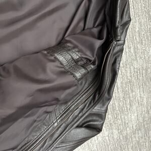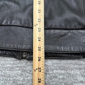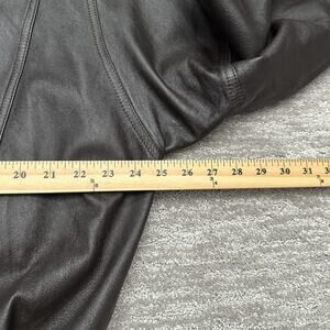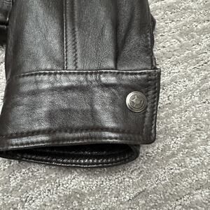 Pre-owned jacket with supple leather and light creasing from gentle wear. Leather is scuffed on one of the cuffs. Lining is clean and intact, and all snaps and zipper function properly. No tears, holes, or stains on the leather or lining.