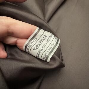 Color: Dark brown; outer shell in genuine leather ("vera pelle"), lining 100% viscose.