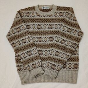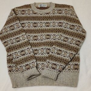 SHETLAND 💯 Wool Cozy Patterned Turtleneck Sweater - Cream and Brown