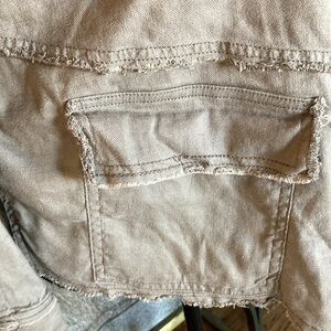 Super cute Linen blend open jacket by Free People! Waterfall collar, raw seams and hem, adjustable side buckles/cinch, excellent condition…little to no signs of wear.