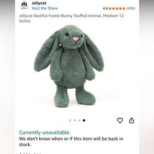 Jellycat Bashful Forest Green Bunny Plush Stuffed Animal