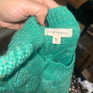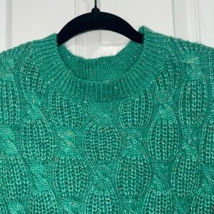 Stay cozy and stylish with this green cable knit sweater. Perfect for any casual outing.