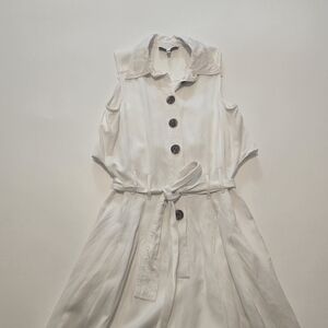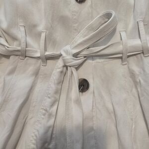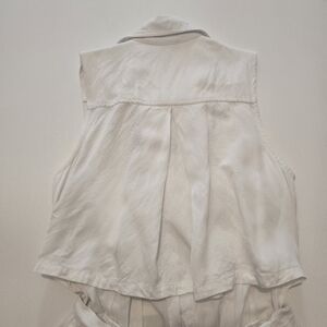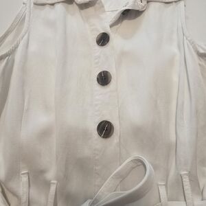 White (Main 85% Viscose, 15% Linen. Lining 100% Viscose). Jumpsuit. Sleeveless. Collared. Front button closure.