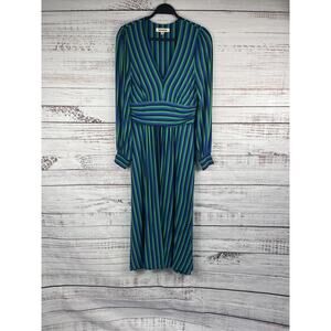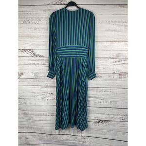 Boden Dress Womens 8 Blue Green Striped V Neck Long Sleeve Midi Fit Flare Jersey