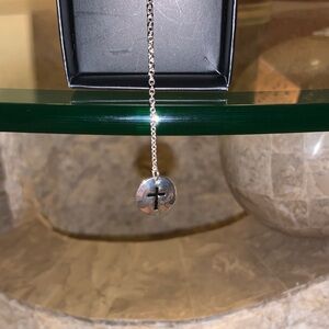 Elegant silver lariat necklace featuring a cross pendant. Perfect for adding a touch of sophistication to any outfit.