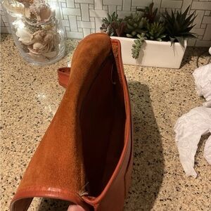 Vintage Coach Suspender Bag in extremely rare RUST. Glovetanned Cowhide leather and brass hardware. Style is 9490, made in early 1970s in the original NYC factory. Extremely rare, collector bag. Pre serial number